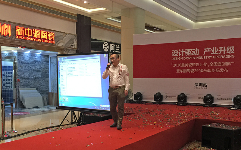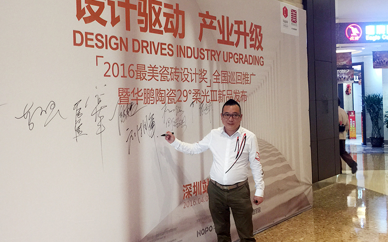 2016年4月9日,“產品驅動產業升級”高峰論壇暨“最美瓷磚設計獎”在廣東深圳成功舉辦,我司總經理劉擁軍及經理劉作平邀參與了這次活動,并在會上發表講話,以自己在設計領域所取得的經驗和成果為支撐,深入剖析了設計與產品之間的跨界融合。該論壇已被廣東省設計活動整體性區域品牌“設計廣東”納入平臺框架,作為廣東省“設計走進產業集群”的一項重要活動在全球范圍內深入展開。“設計驅動產業升級”已成為中國優秀設計師進一步發展的重要趨勢和手段。